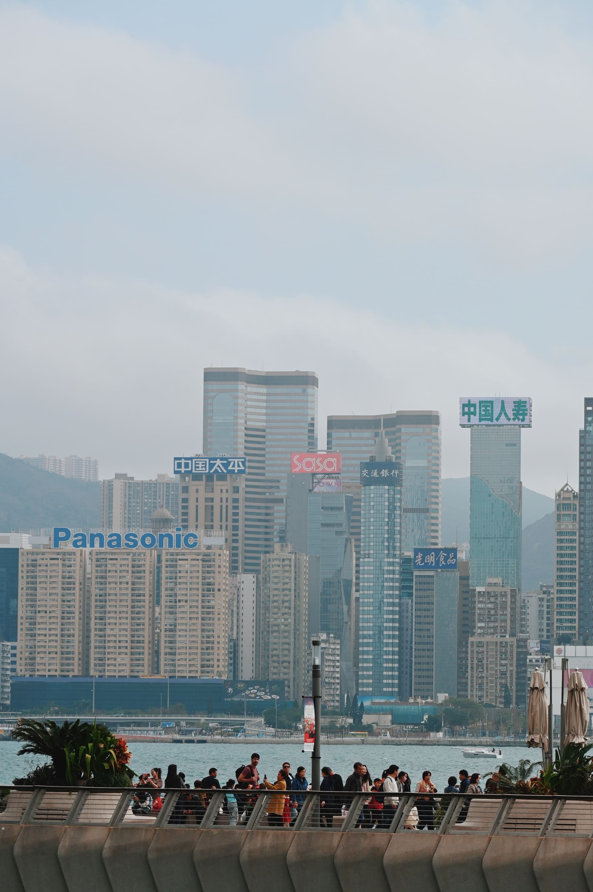 Signs of global corporations displayed on the top of the skyscrapers, which can be viewed from far away, even across the harbour