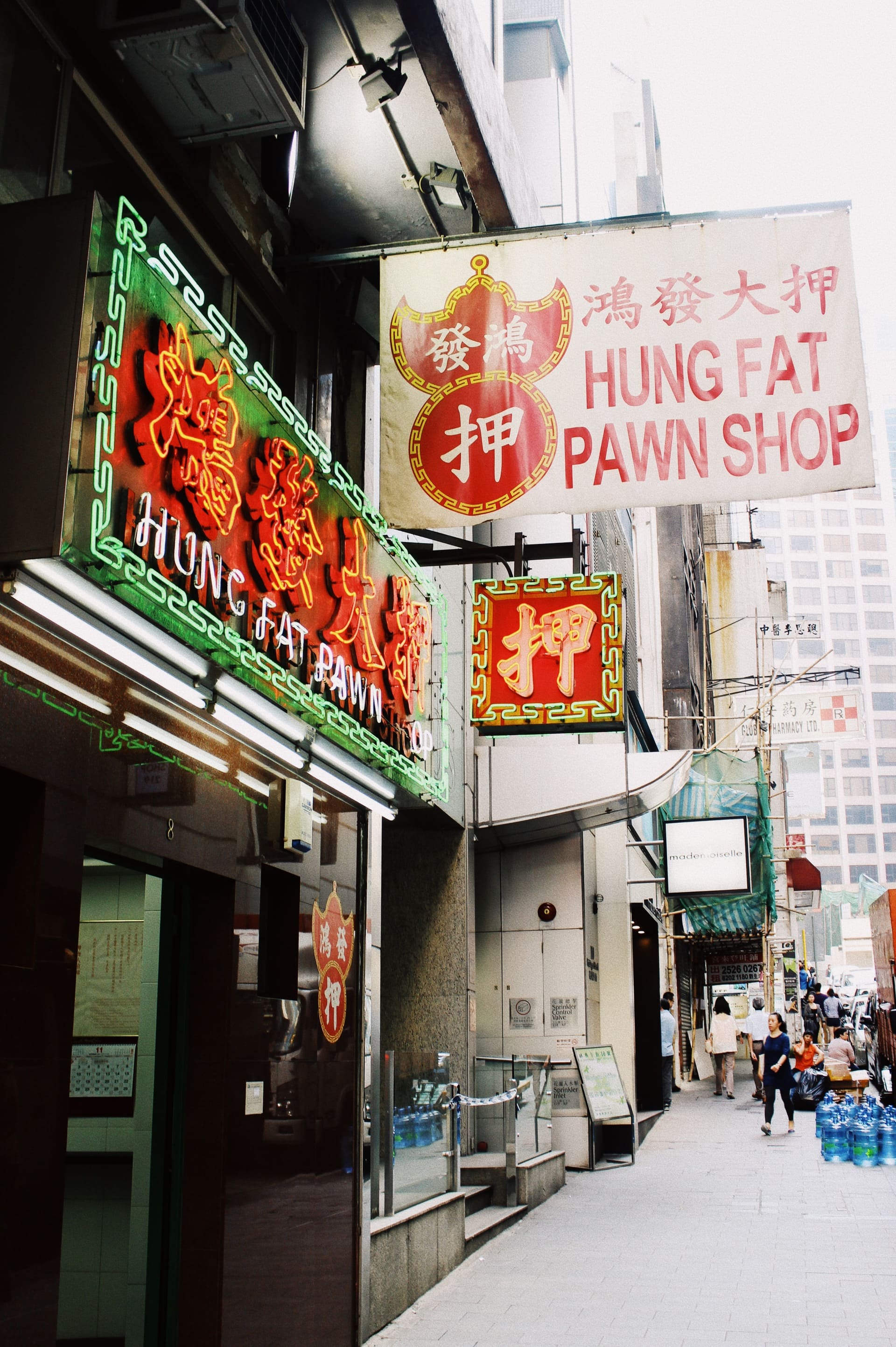You can easily spot a pawn shop by its sign. It usually has a classic symbol featuring a stylized bat and a coin. This sign may be found on a canvas, plastic lightbox, or in neon tubes. The Chinese pronunciation of ‘bat’ is the same as that of ‘happiness’, making it represent auspiciousness.
