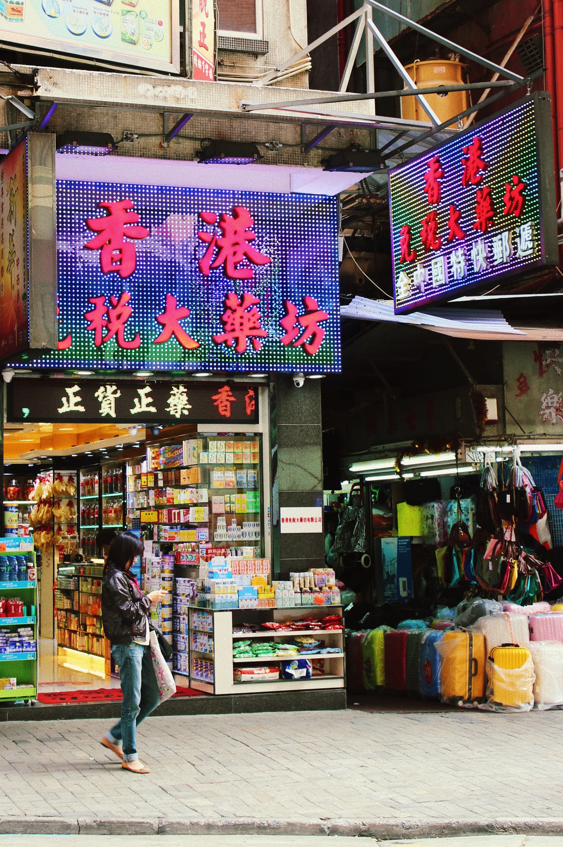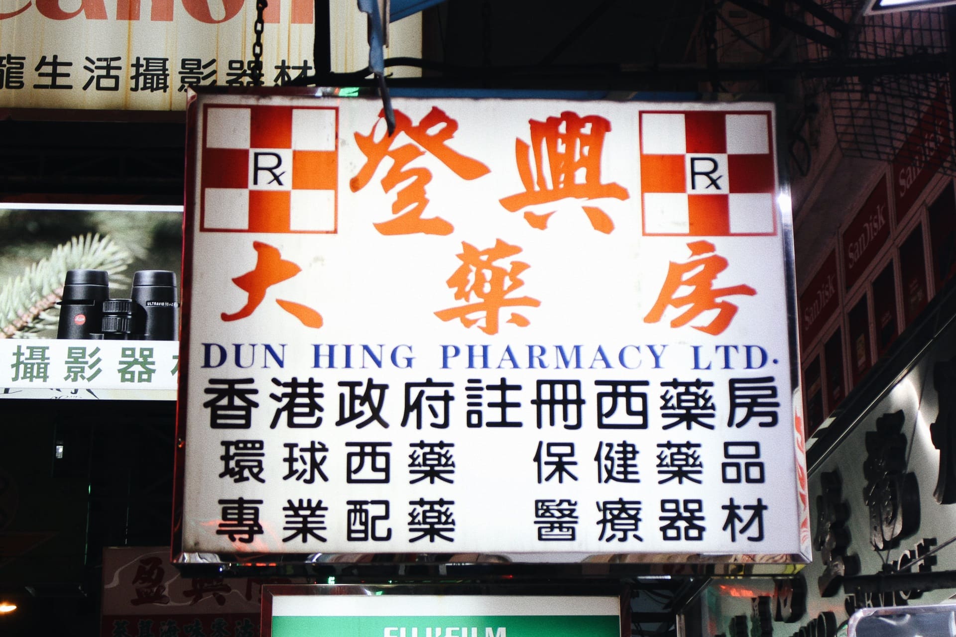 Once being a humble white lightbox, pharmacy signs are now made of colorful LED lights with registered trademark (the symbol of letter ‘P’ combined with letter ‘X’ placed in a white square of a red cross). After the Individual Visit Scheme was introduced in 2003 to let mainlanders visit Hong Kong and Macau freely, tourism in Hong Kong gained another source of income. Tourists buy duty-free baby formula, medicine, and other items. This makes pharmacies popular with them. As a result, these shops started using bright LED signs to attract customers.
